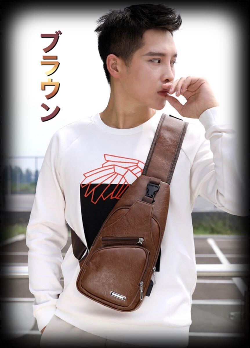 - ボディーバッグ 大容量 軽量 通勤 通学 PUレザー おしゃれ ワンショルダー ブラウン
