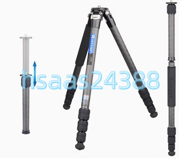 - ARTCISE CS50C カーボン三脚 トラベル三脚 26mmパイプ径 全高1570mm 4段 ナットロック式 一脚可変式多場景適用 カメラビデオ 三脚
