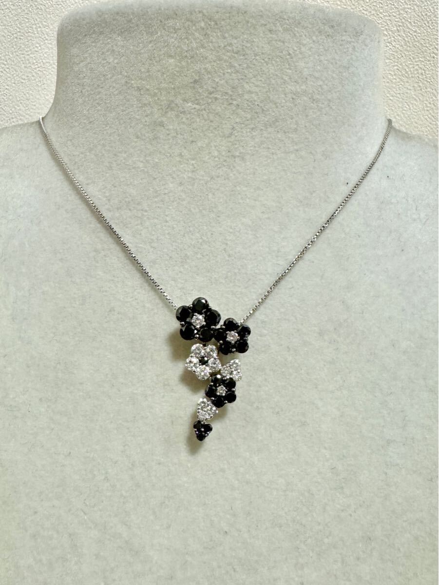 - 【質屋 尾張屋商店 東京】 ☆仕上済☆ K18WG ダイヤ ブラックダイヤ ネックレス レディースアクセサリー 45cm