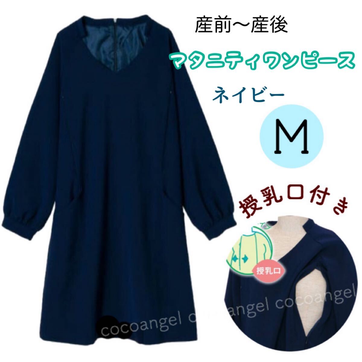 > マタニティワンピース M紺*新品 授乳口付き フォーマルワンピ お宮参り 結婚式 通勤 仕事 産前産後 セレモニー 入園 入学 七五三 出産