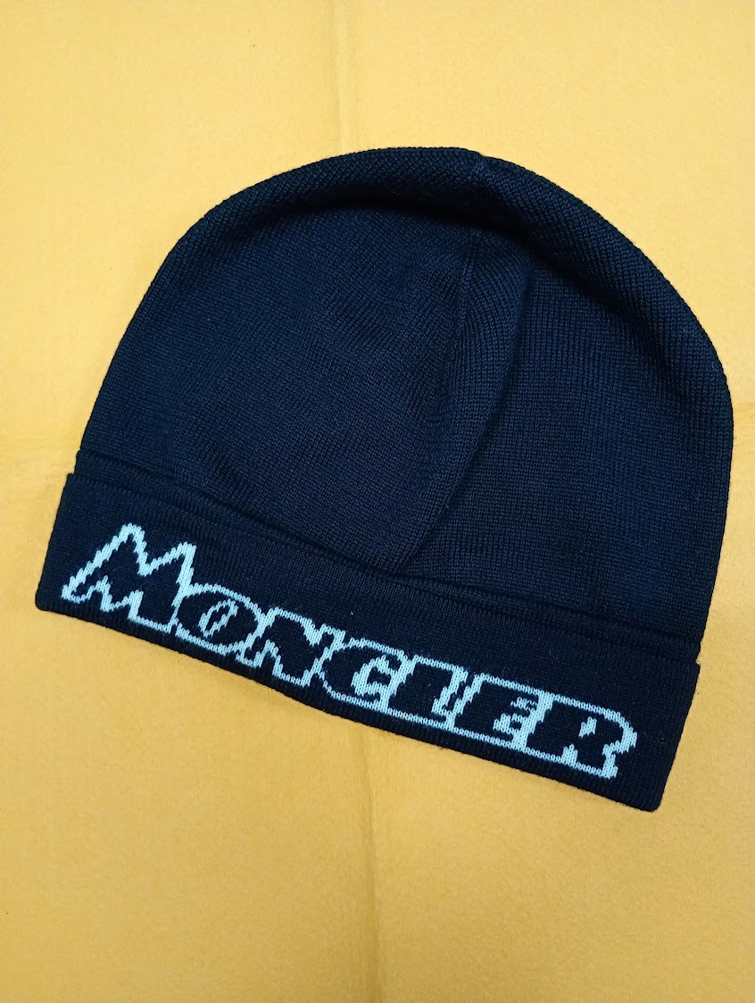 > ☆【528】モンクレール ニットキャップ / MONCLER イタリア製 ニット帽 帽子 キャップ 黒系 ブラック系