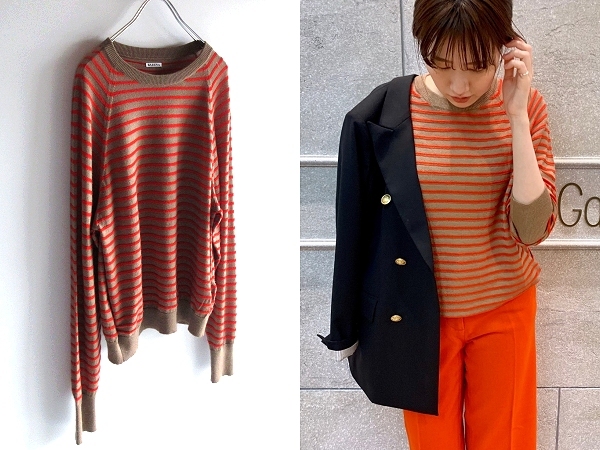 - 定価51700円 イタリア製 Whim Gazette/ウィムガゼット購入 BARENA バレナ ウールシルク ボーダー柄 ニット S キャメル オレンジ ゆったり