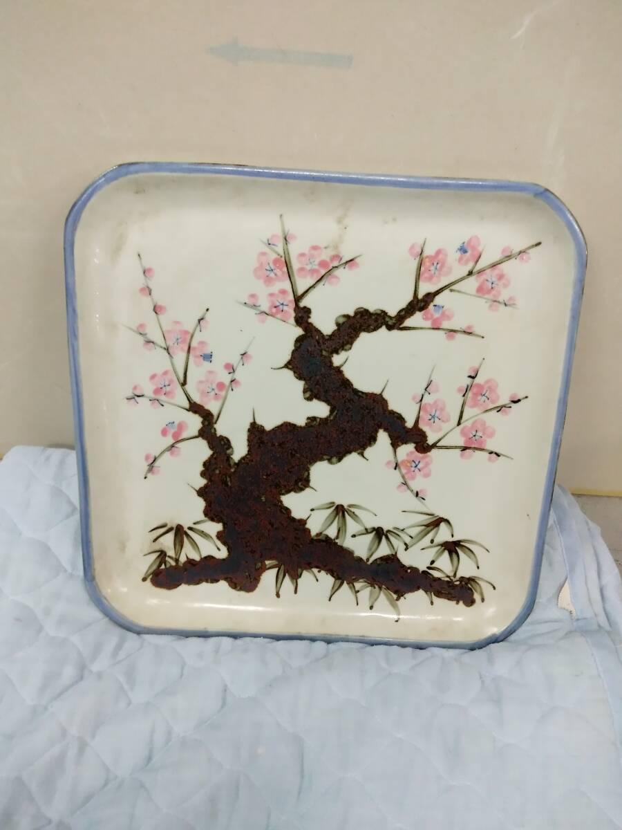 - 0317-0017 中古★盛皿 桜 大皿 盛皿 陶器 角皿 和食器 食器 約33cm
