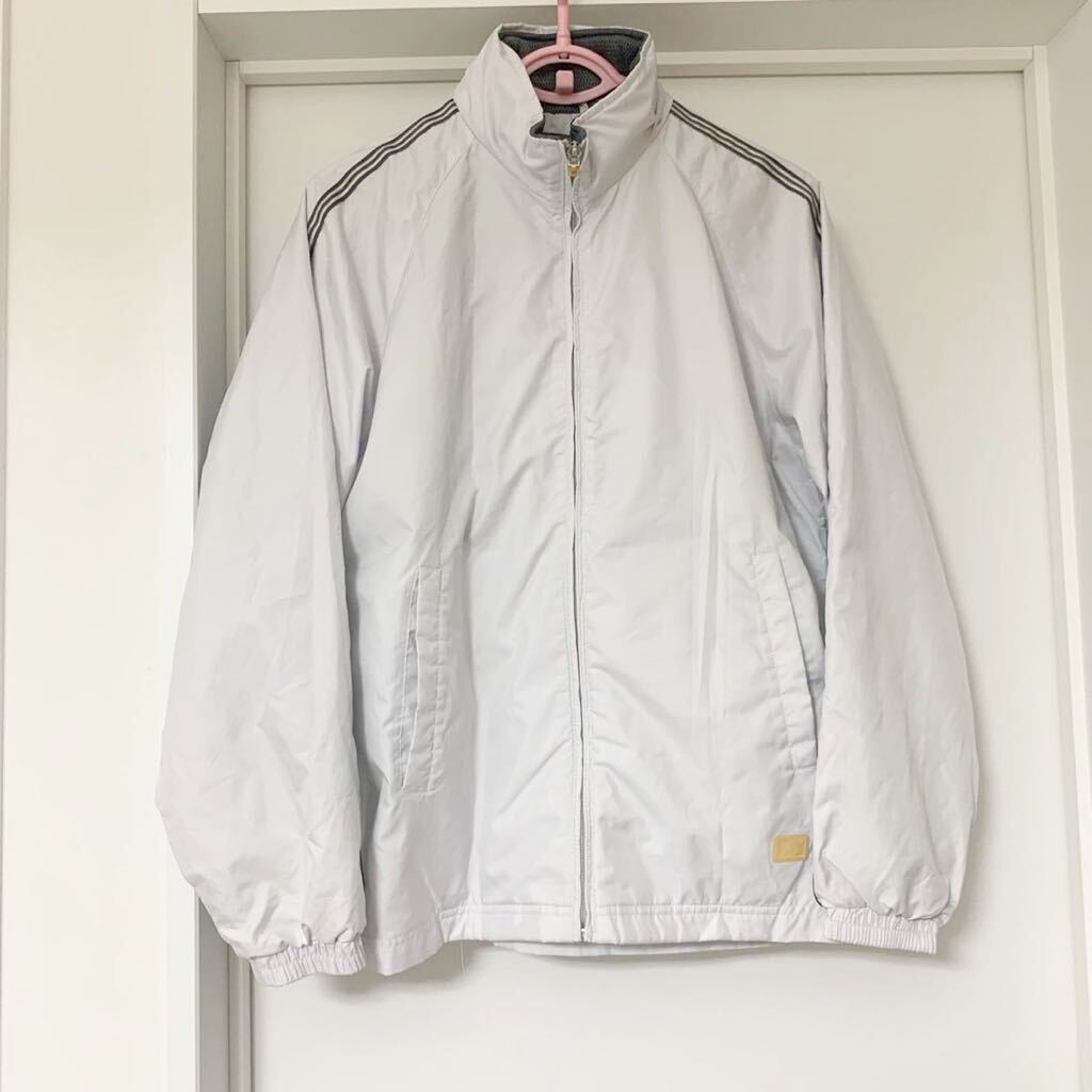 - 反射材付ウィンドブレーカー フード付き スポーツウェア上着 ホワイト 白 ナイロンジャケット マウンテンパーカー ランニングウェア 陸上