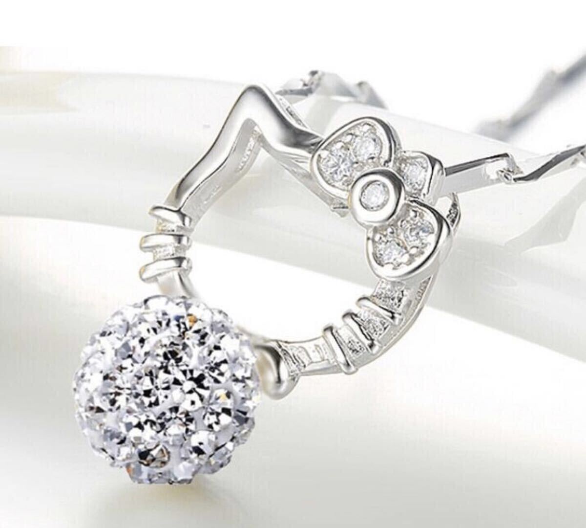 - ネックレス ペンダント Hello Kitty ハローキティ シルバー925 プラチナ仕上げ ミラーボール キュービックジルコニア ダイヤモンド CZ