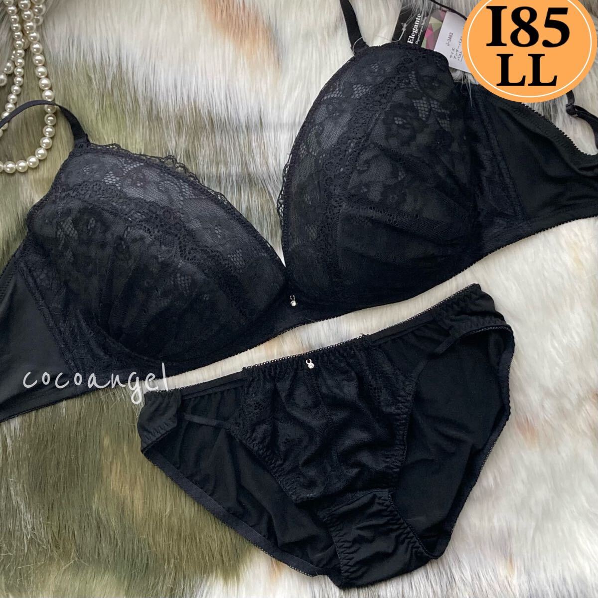 > 【I85/LL 黒 上下】新品 ブラ&ショーツ ブラジャーショーツセット パッド付き レース セクシーパンティ 女装 男性 Iカップ 大きいサイズ
