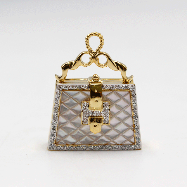 - K18 バッグモチーフ ペンダントトップ FD0.46ct 17.7g