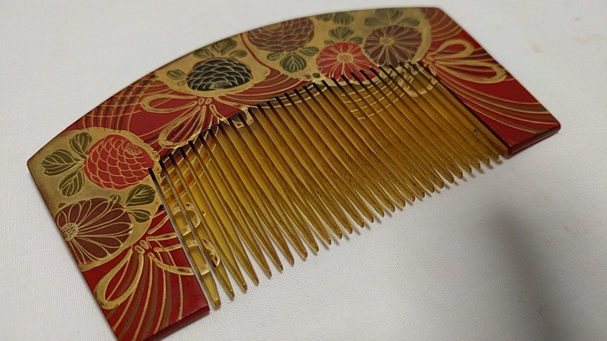 - ☆髪飾り/レトロな和くし/丸菊 両面に柄10.5cm、