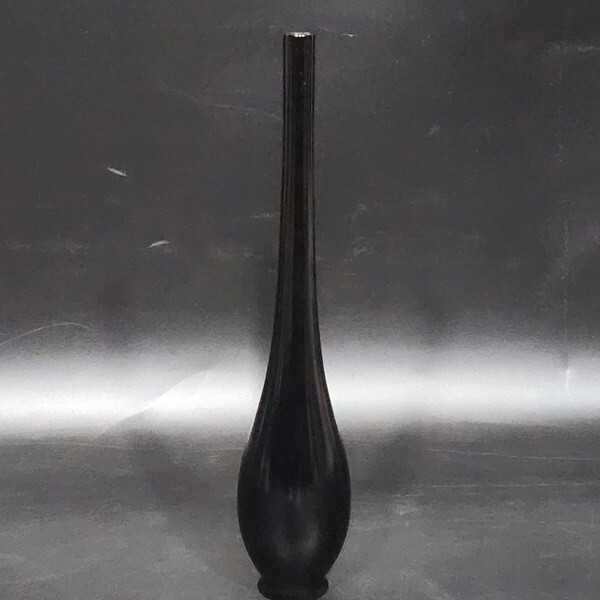 - M82 茶道具 銅器 花瓶 黒 花立 鶴首 約30㎝ 箱付き