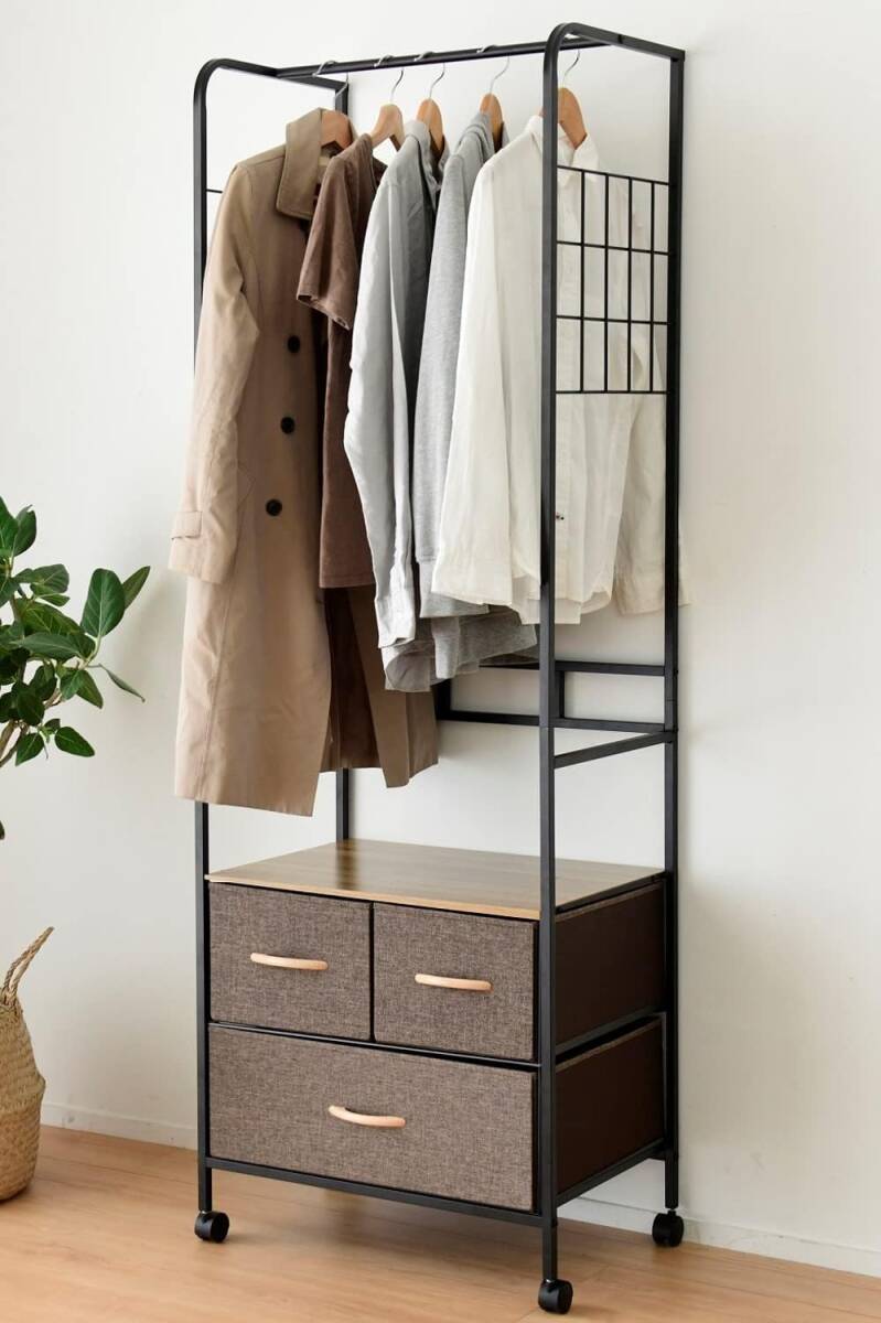 - 【新品】 [山善] ハンガーラック スリム (キャスター付き) ロボット掃除機が通れる 引き出し付き