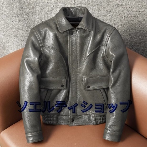> 高級品◆牛革1.5mm 上品 アメカジ 本革 レザージャケット 革ジャン 機関車 バイクレザー メンズファッション S~5XLグレーグリーン