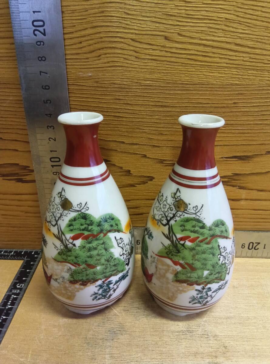 - 24110318 松竹梅鶴柄 徳利セット 2客 松柄 竹柄 梅柄 鶴柄 レトロ柄お猪口 昭和レトロ