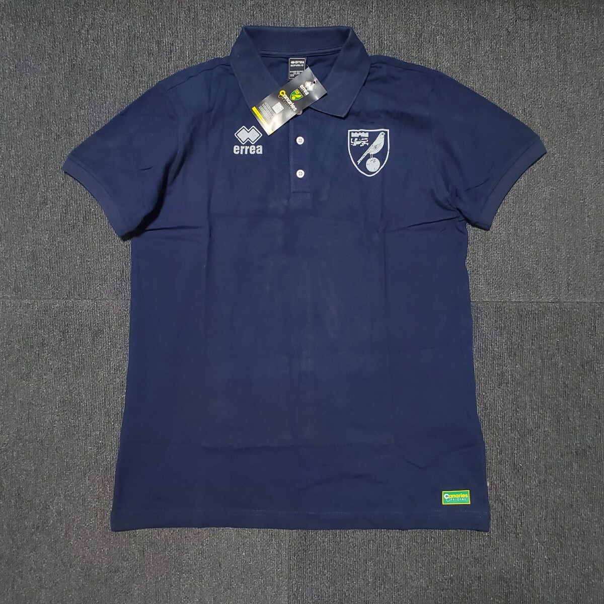 > 新品 Errea サッカーポロ ノリッジ・シティ ポロシャツ 半袖 紺  半袖ポロシャツ サッカー  ゴルフ ネイビー L