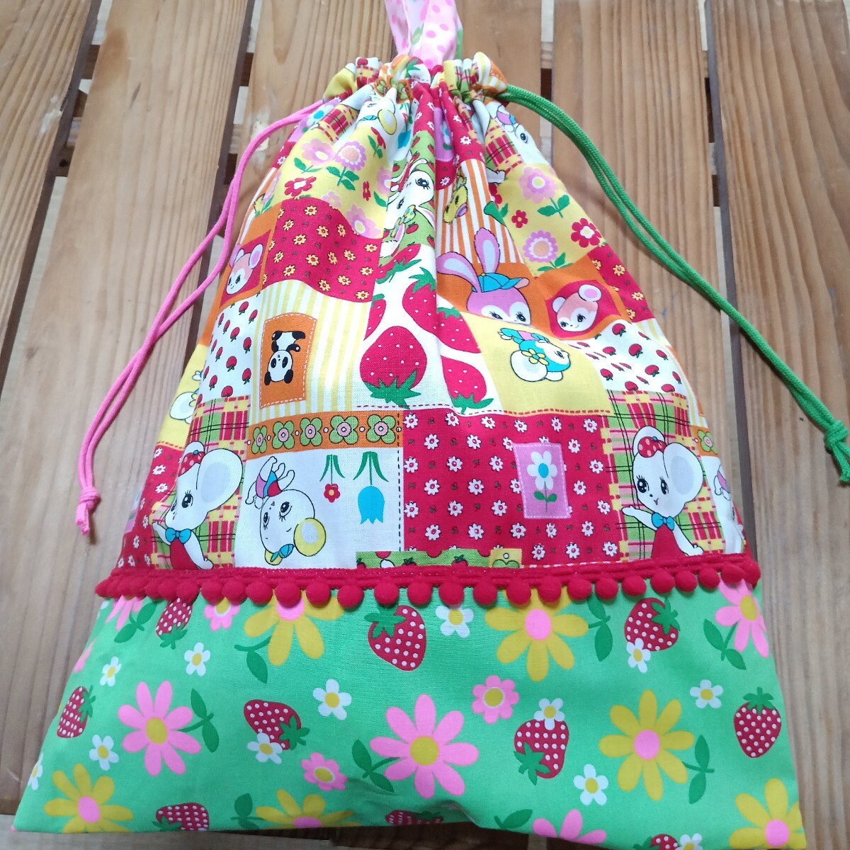 - 入園入学準備 ハニーチューン 体操服袋 お着替え袋 巾着袋 女の子 ゆめかわ ハンドメイド 体操着袋 体育着入れ ピンクス いちご