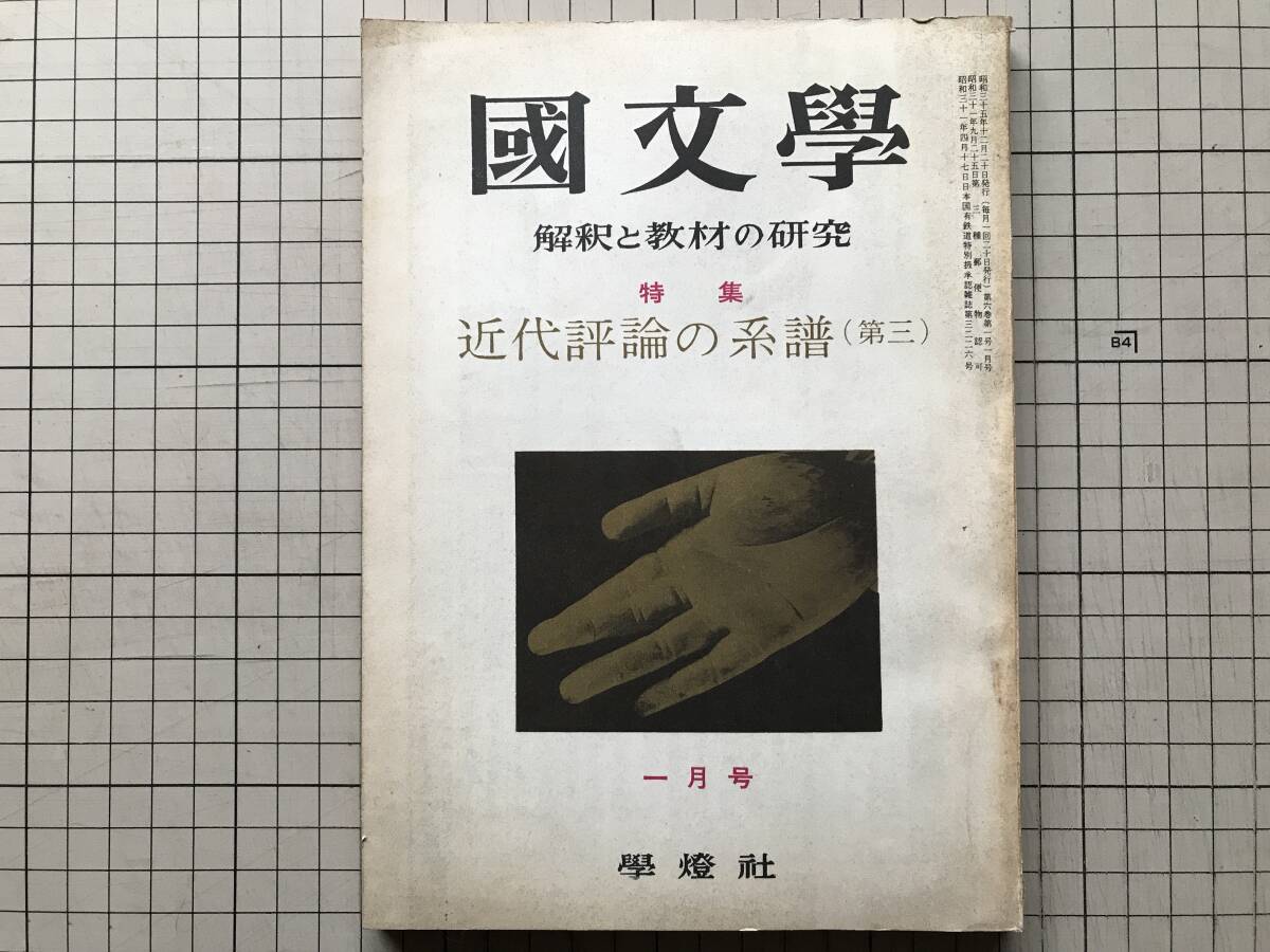> 『国文学 解釈と教材の研究 第6巻1号 近代評論の系譜(第三)』瀬沼茂樹・橋川文三・和田謹吾・小田切進・中村完 他 学燈社 1960年刊 10619