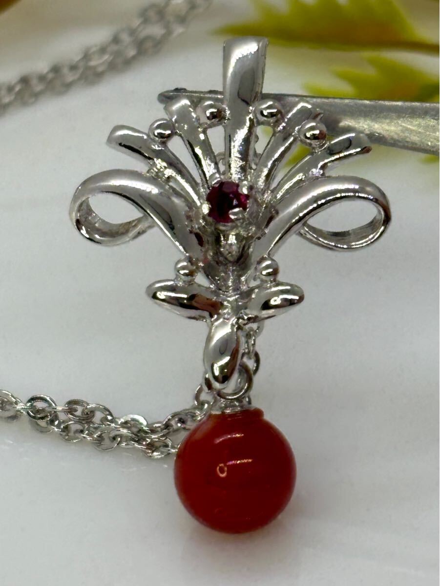 - 天然血赤本珊瑚 6.61mm SILVER ペンダントネックレス(s425))