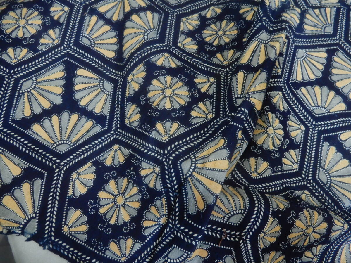 - <銀の斧>正絹と木綿ミックス・藍型染め1巾・色入り・グレーと薄いオレンジ色・アンティーク品