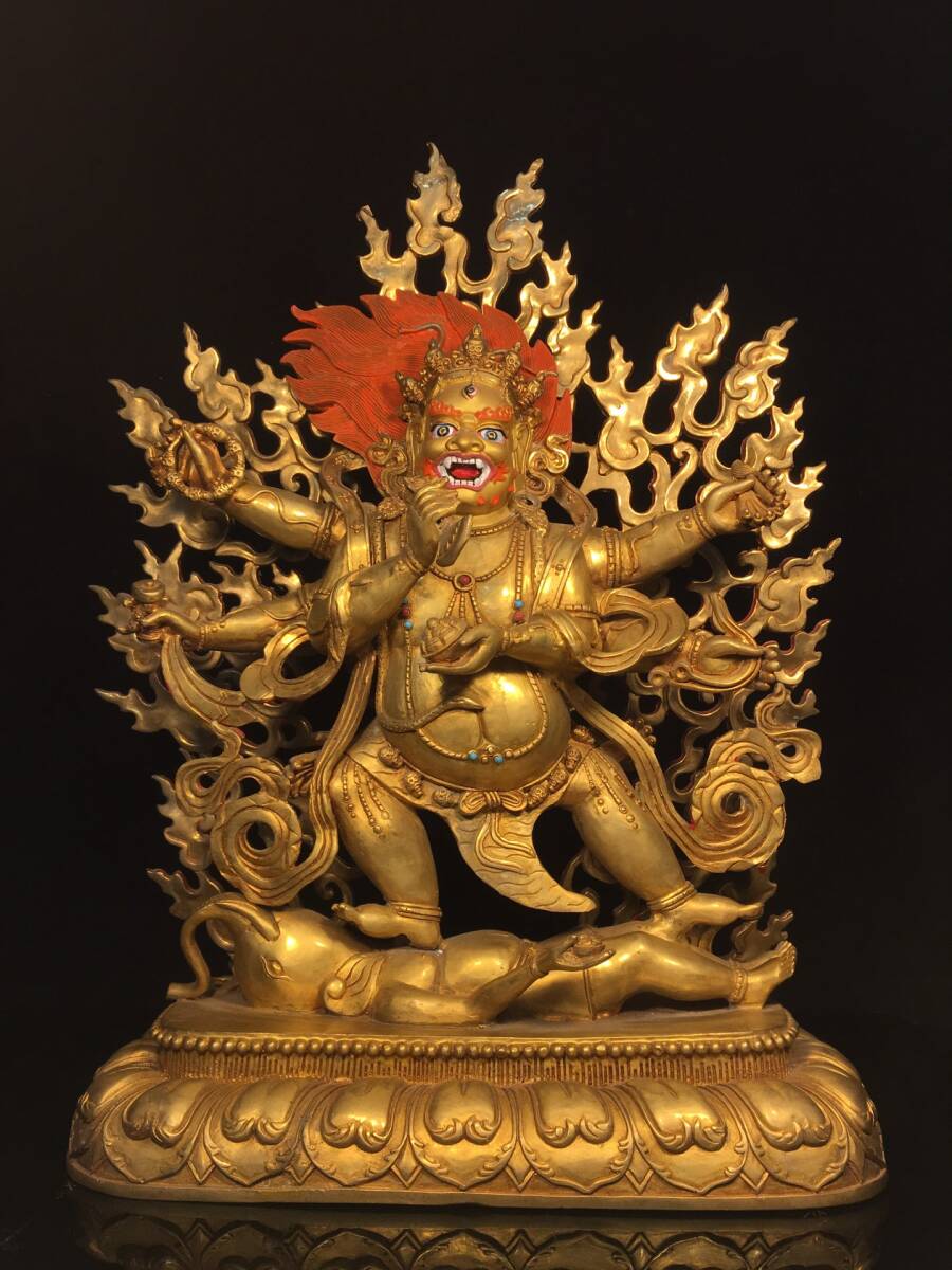 - ◆蔵出◆古美術 中国古玩 大明 古銅製 銅塗金 瑪哈拉仏 仏造像 細密細工造 置物 擺件 古賞物 時代物 A01
