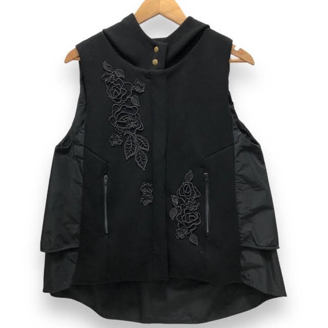 ▼美品 裸衣夢 らいむ 中綿 花柄 刺繍 ベスト 日本製 ブラック Fサイズ レディース 女性用 RC3385