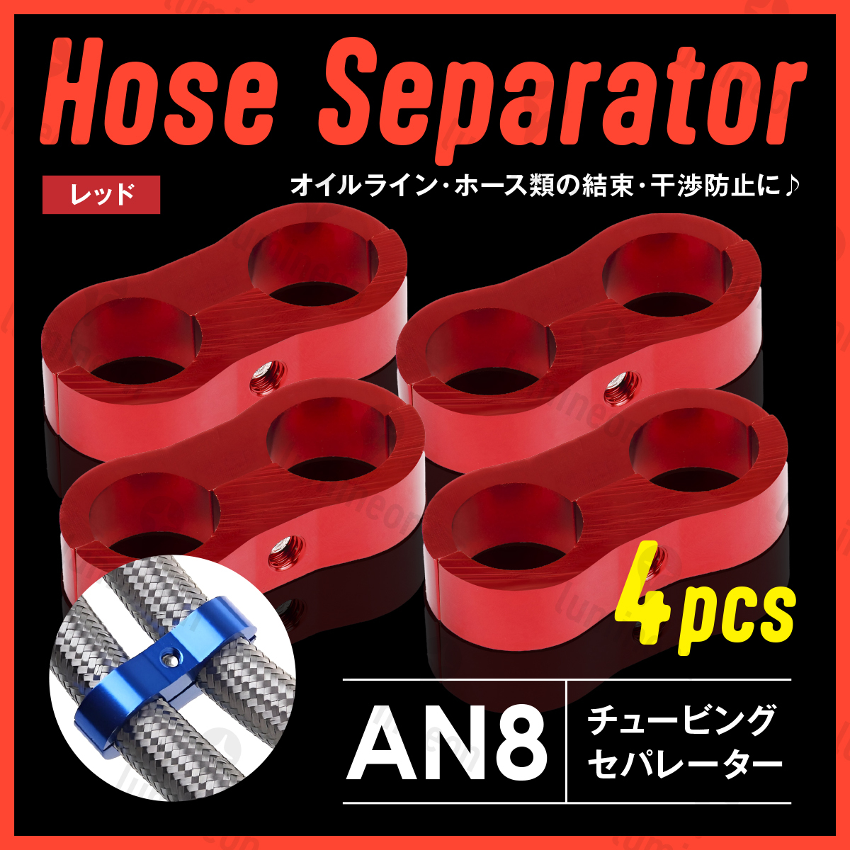 > ホース セパレーター チュービング クランプ 4個 セット フィッティング アダプター バイク 二輪 車用 AN8 配線 固定 レッド 赤 g231a3 1