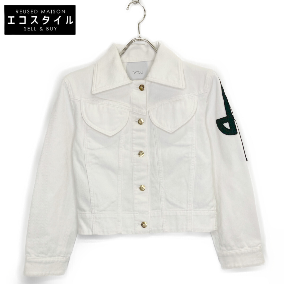 - PATOU パトゥ ホワイト オーガニックコットン 刺繍ロゴ デニムジャケット OU0010081001W ホワイト 36 ジャケット デニム レディース 中古