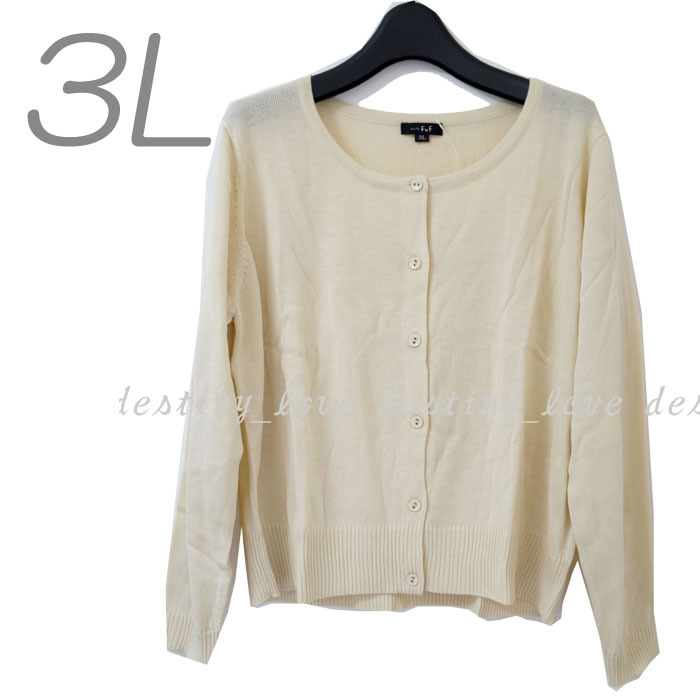 - ●無地/薄手カーディガン/3L/新品/アイボリー系/丸首●f2309