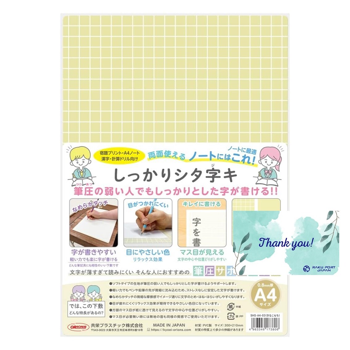 - 共栄プラスチック 下敷き しっかりシタ字キ A4判 きなこもち イエロー RPJセット SHS-A4-03【A4】