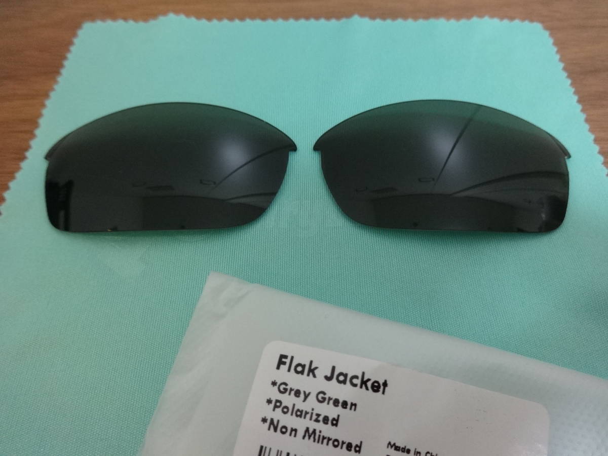 - レアカラー!処分価格!★オークリーフラックジャケット用カスタム偏光レンズ GREY GREEN Polarized新品Flak Jacket