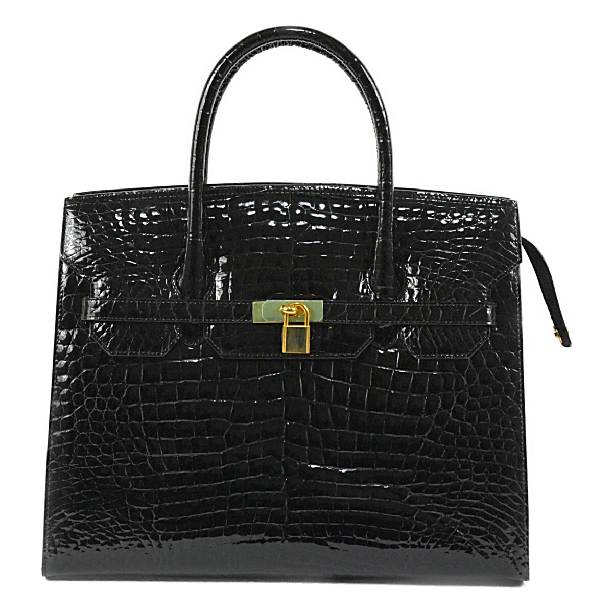 - クロコダイル リアル クロコダイル アリゲーター 超豪華 トートバッグ 黒 ゴールド金具 メンズバッグ