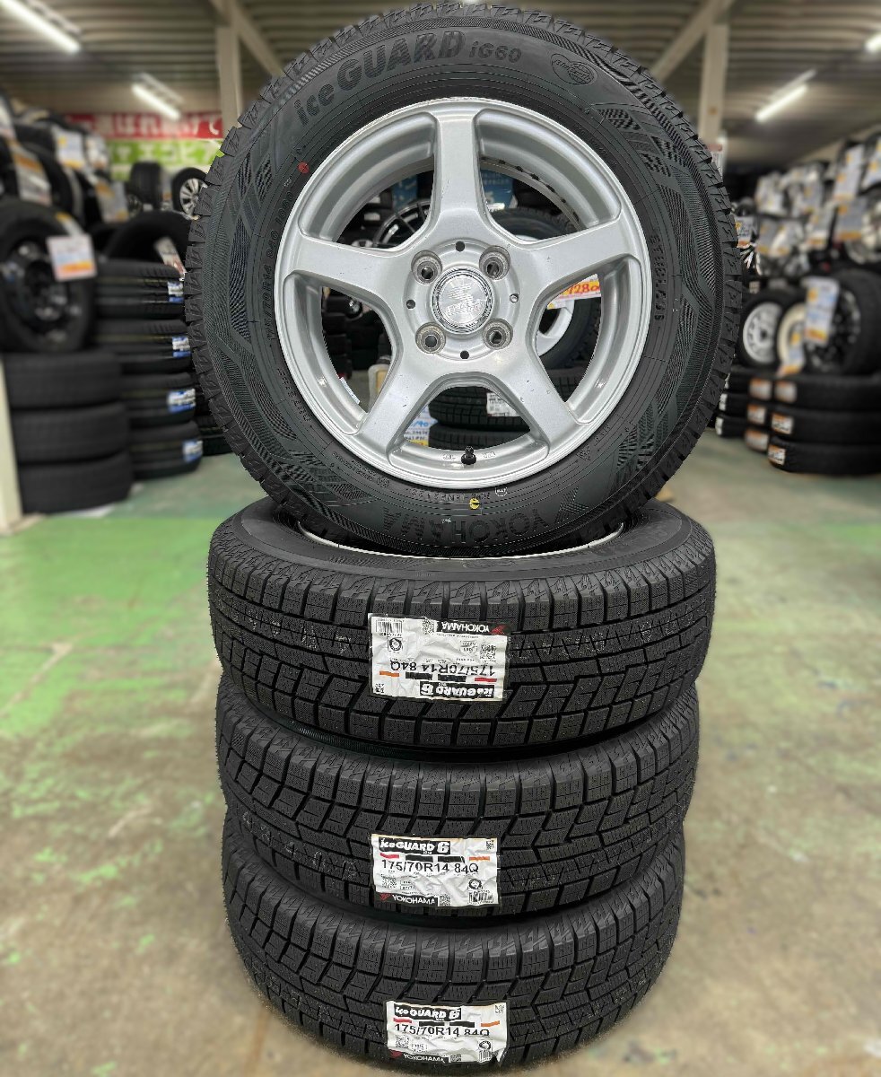 > ●ヤリス ポルテ etc 新品スタッドレス 175/70R14 ヨコハマ アイスガード iG60 2023年製+中古 14インチホイール + 4本セット!