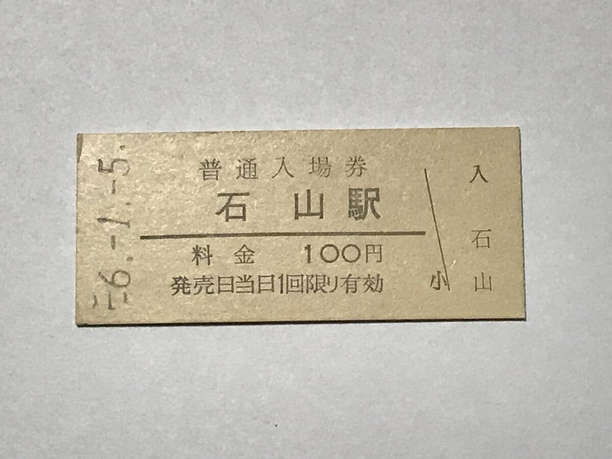 - 昔の切符 きっぷ 硬券 石山駅 普通入場券 100円 サイズ:約2.5×約5.8㎝ S56 HF5182 くるり 岸田繁