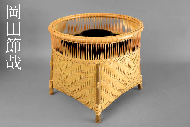 - 茶道具 岡田節哉 作 清風籠 炭斗 籠花入としても使えます 竹編炭籠
