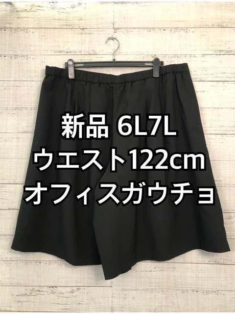 - 新品☆6L7Lウエスト122♪黒系♪きれいめガウチョ♪お仕事・オフィスにも☆y952