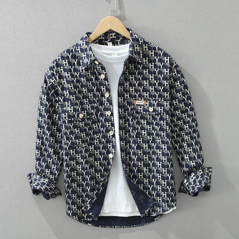 - ☆新品 長袖シャツ メンズ シャツジャケット カジュアルシャツ 総柄 トップス 春秋服 色 サイズ選択可 紺色 M