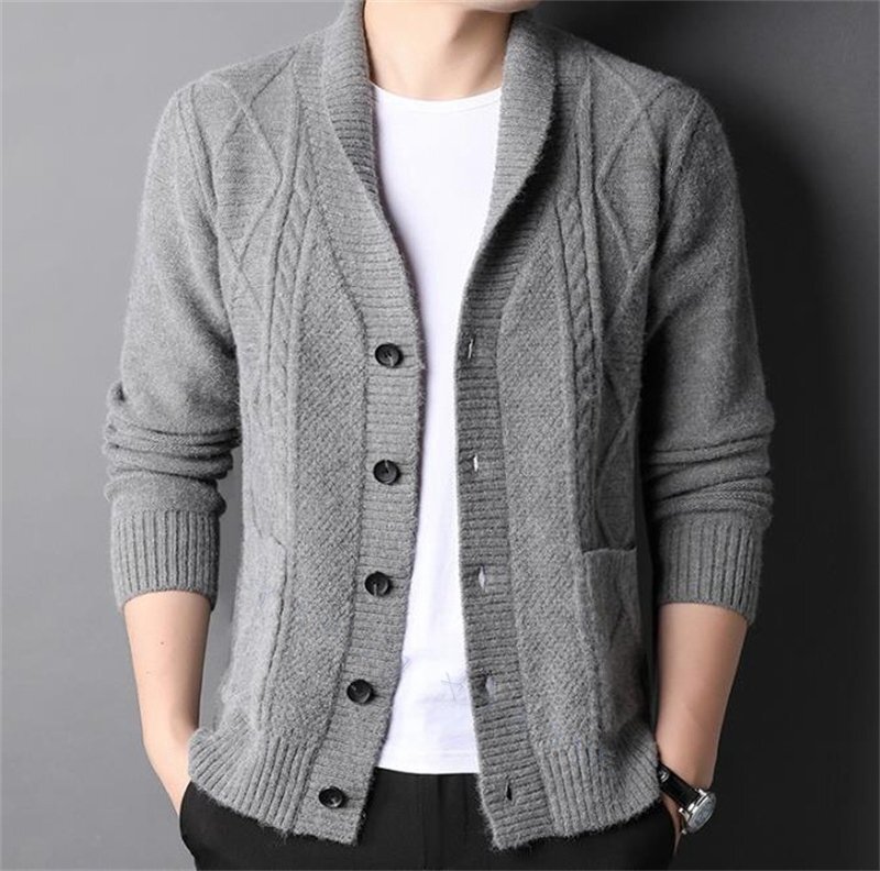 - ☆新品 カーディガン メンズ 長袖 無地 ニットジャケット秋服 冬服 保温 ジャケットトップス ウール混ん ダークグレー 2XL