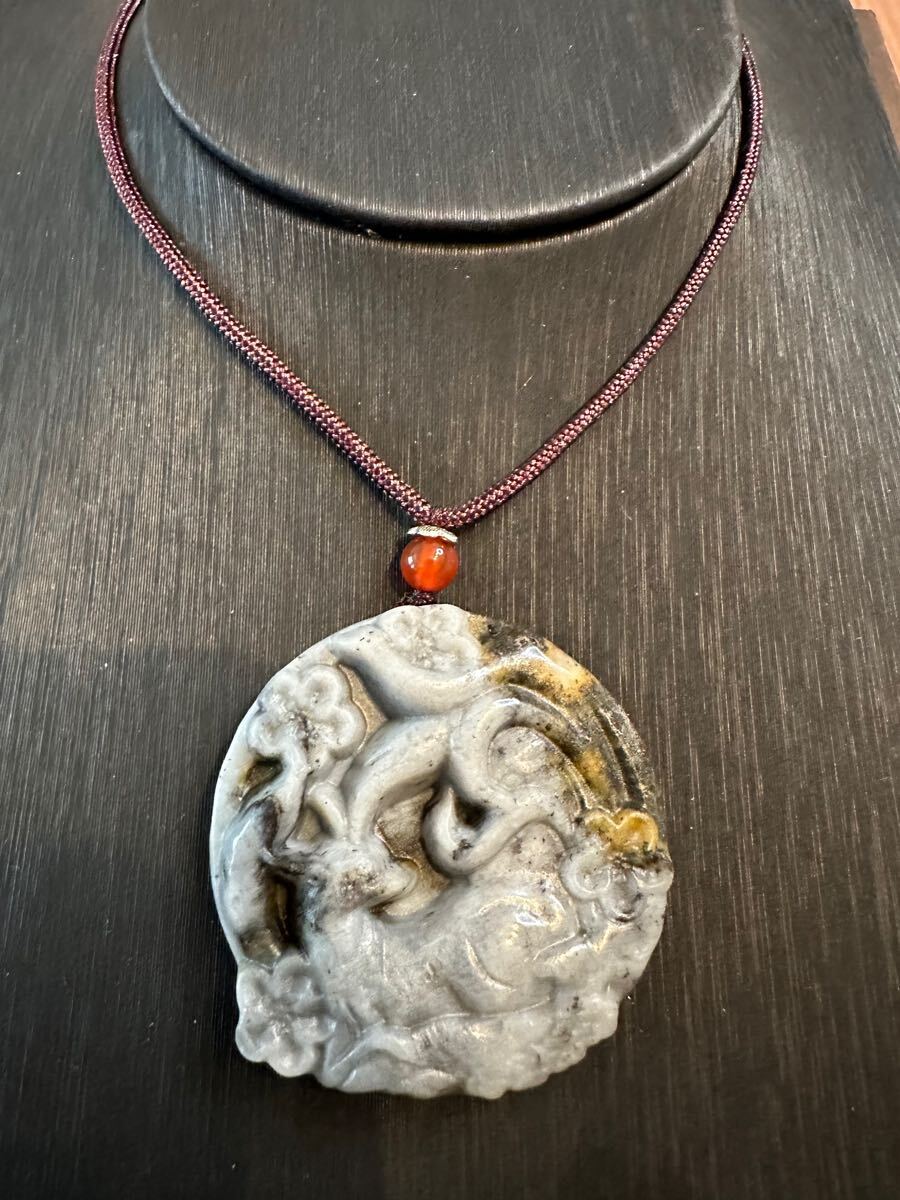 - K-580 天然石 岫玉 九尾の狐 ネックレス ペンダント