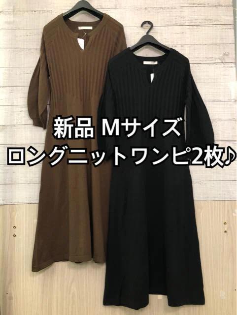 - 新品☆M♪黒系×茶系♪お洒落ニットロングワンピースを2枚☆y632