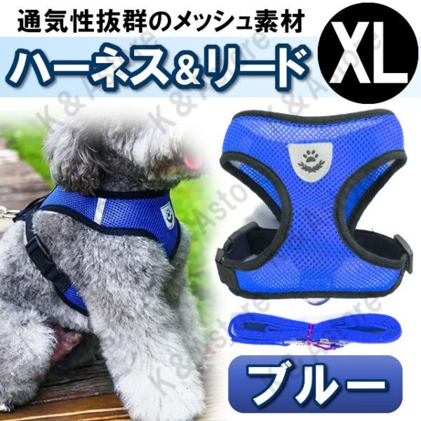 - ハーネス リード メッシュ ペット 犬用 猫用 散歩 抜けない 脱げない 首輪 胴輪 超小型犬用 小型犬用 XLサイズ 青 ブルー