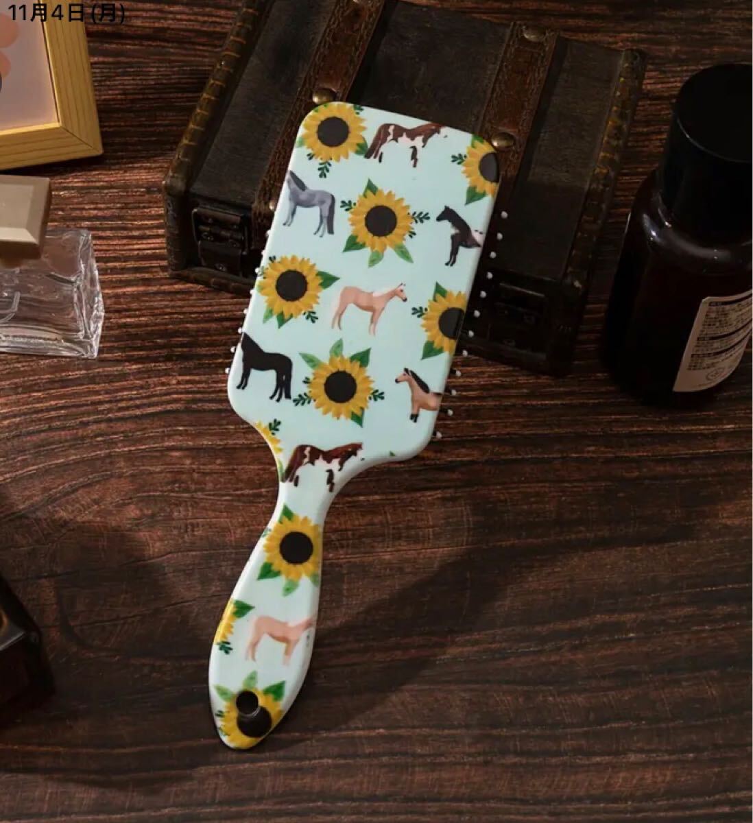 - 乗馬 馬柄 エアクッションブラシ テールブラシ グリーン 馬 新品