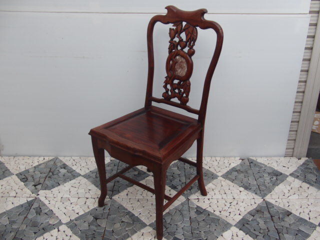 - ◆中国古美術◆オリエンタル唐木家具/椅子 手彫り 総無垢 大理石◆USED品 管T-UP