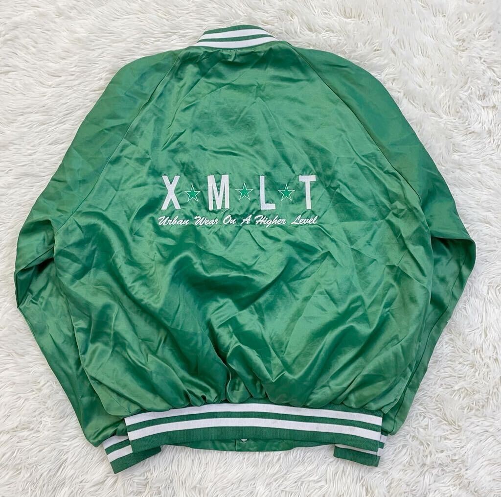 > 希少 レア 70-80s USA製 WESTARK スカジャン ナイロンジャケット メンズ Lサイズ相当 光沢グリーン アメカジ デッドストック品