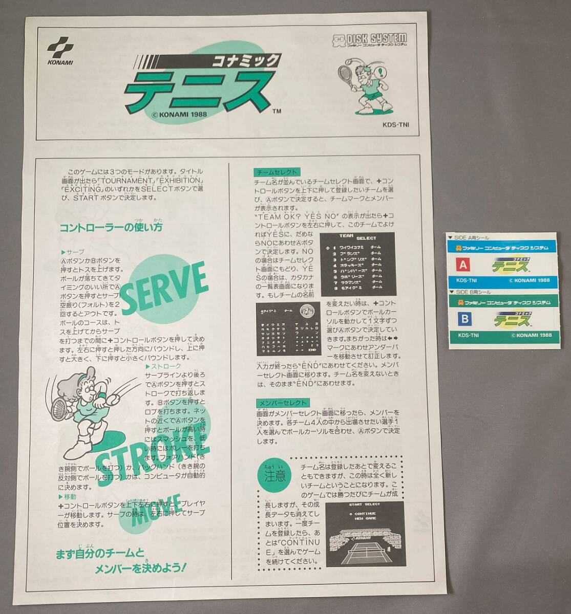 - コナミック テニス☆書き換え用説明書&ラベルシール☆ファミコン ディスクシステム