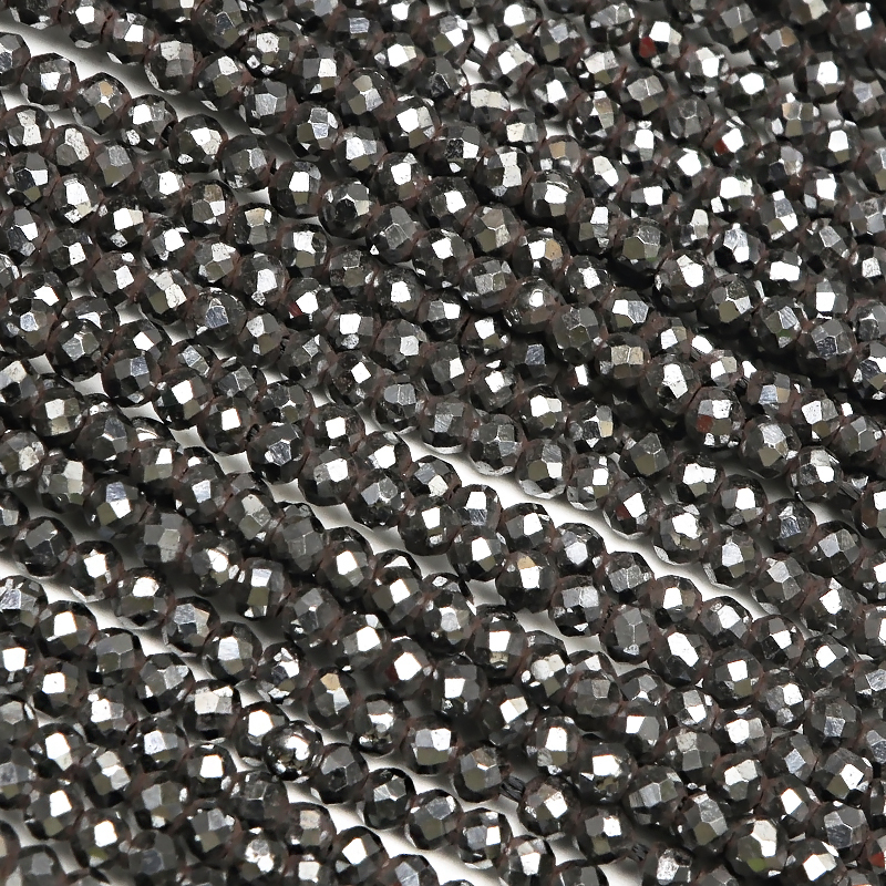 - ヘマタイト[磁気入り] 面カット 丸玉 2mm【1連販売】 / 7-17 HE2MC-X