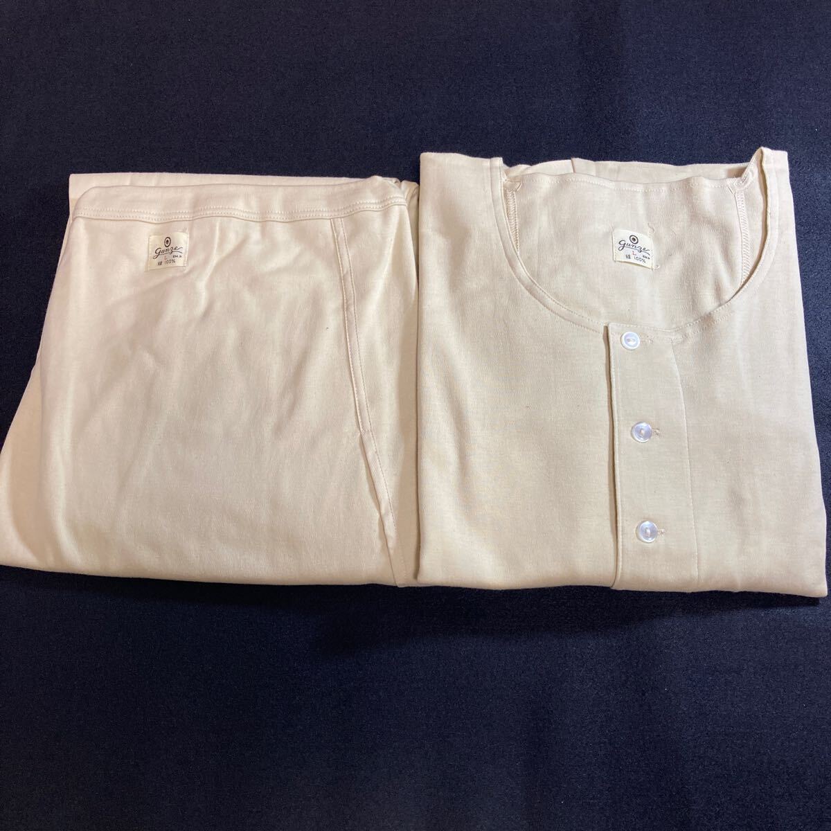- 未使用 レトロ GUNZE グンゼ 肌着 上下セット Lサイズ 長袖 長ズボン 1