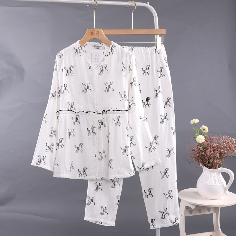 - レディース M~Lサイズ コットン 純綿 Wガーゼ 柔らかい 通気 パジャマ YWQ267