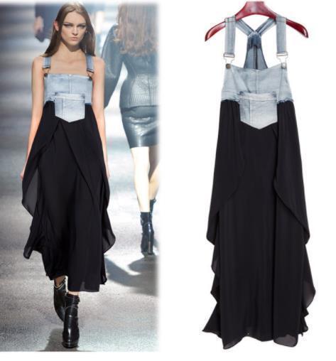 - レディース ロングスカート デニム サロペット ゆったり 無地 ワンピース 特別デザインYWQ2051