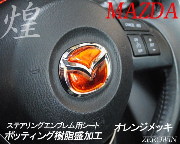 - マツダ ステアリング エンブレムシート オレンジメッキ ハンドル用 SDH-M01 樹脂盛立体3D MAZDA ZEROWIN
