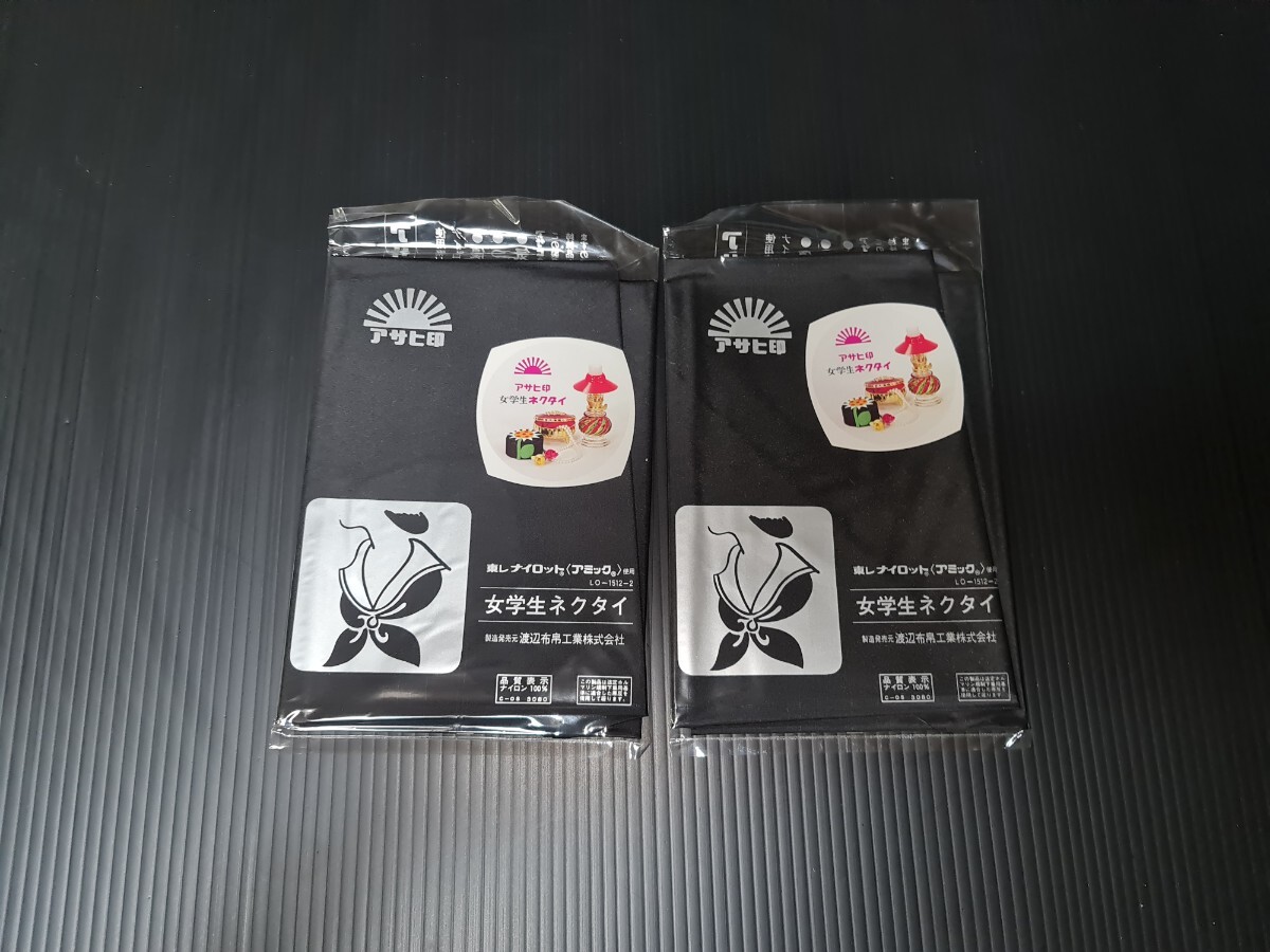 - 新品未使用品 昭和レトロ アサヒ印 女学生ネクタイ セーラー服スカーフ 黒 2枚セット ①