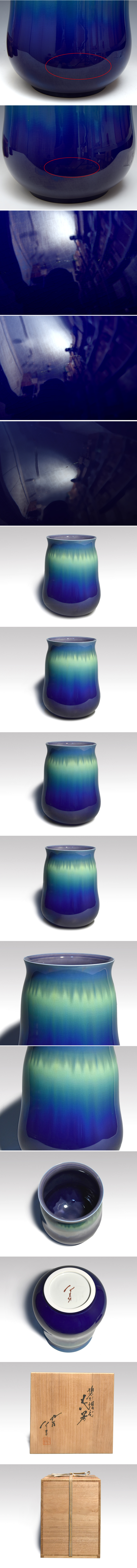 - 大振り 人間国宝 三代 徳田八十吉(造)碧明耀彩花器 共箱 花生 花瓶 花入 現代工芸 九谷焼 華道具 飾壷 y2722o