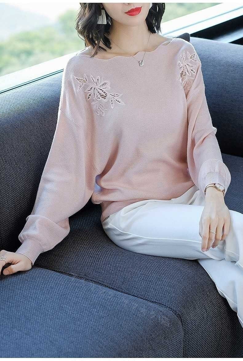 > ☆新品セーター トップス 暖かい レディース 大きいサイズ 秋 冬 ピンクベージュ ブラック オフホワイト 花柄 刺繍 上品 きれいめ